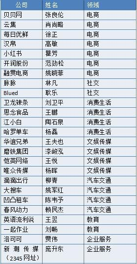 曹挺、邓锋、邓营/侯屈平夫妇、葛航、龚虹嘉、黄昌华、林刚、马化腾、倪良正、沈月华、石聚彬、王东辉、王健林、吴亚军、徐海照、薛景霞、姚忠良、张拥军、赵心竹、朱献福、朱新红
