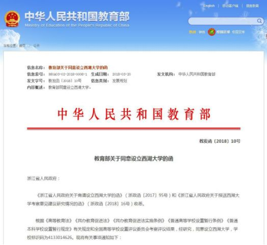 西湖大学正式获批