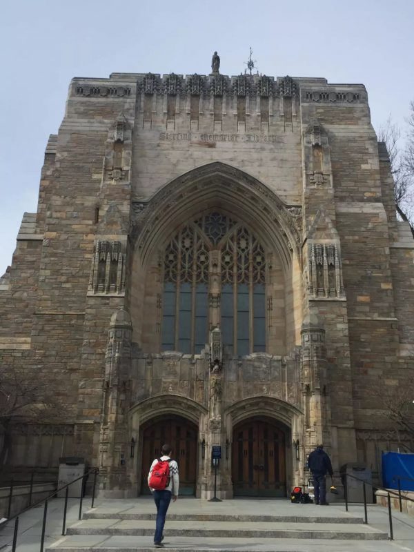 校友史德林捐款修建的耶鲁大学最大的图书馆——史德林图书馆的正门。 江亚平 摄