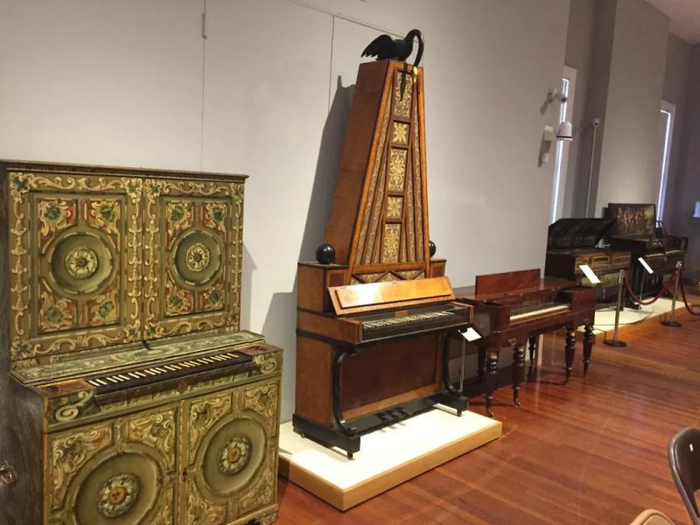 耶鲁大学乐器博物馆展出的部分古老的钢琴,大多数都是校友捐赠的。 江亚平 摄