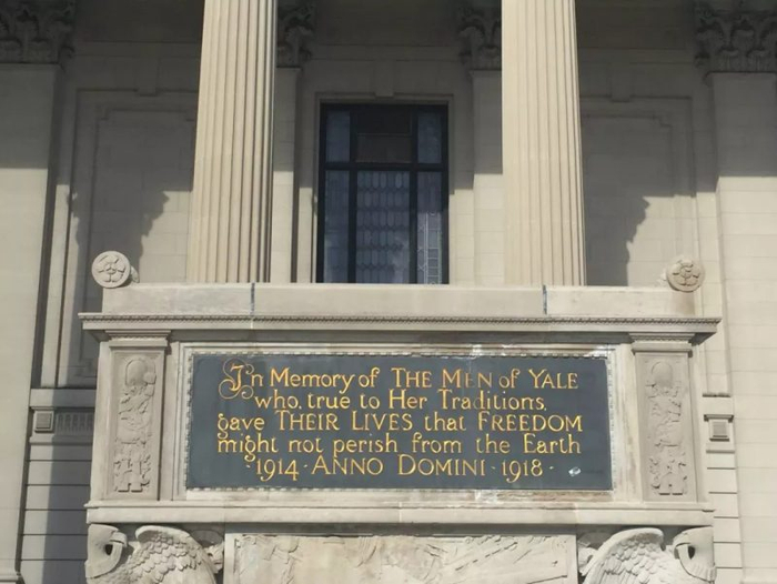 在这场战争中,耶鲁学生积极响应号召,义无反顾地投笔从戎,到欧洲最残酷的战场上去,许多人因此为国捐躯,马革裹尸。据记载,在1917年到1918年大战结束的大约1年多时间里,有9500名耶鲁人参战,其中227人牺牲。