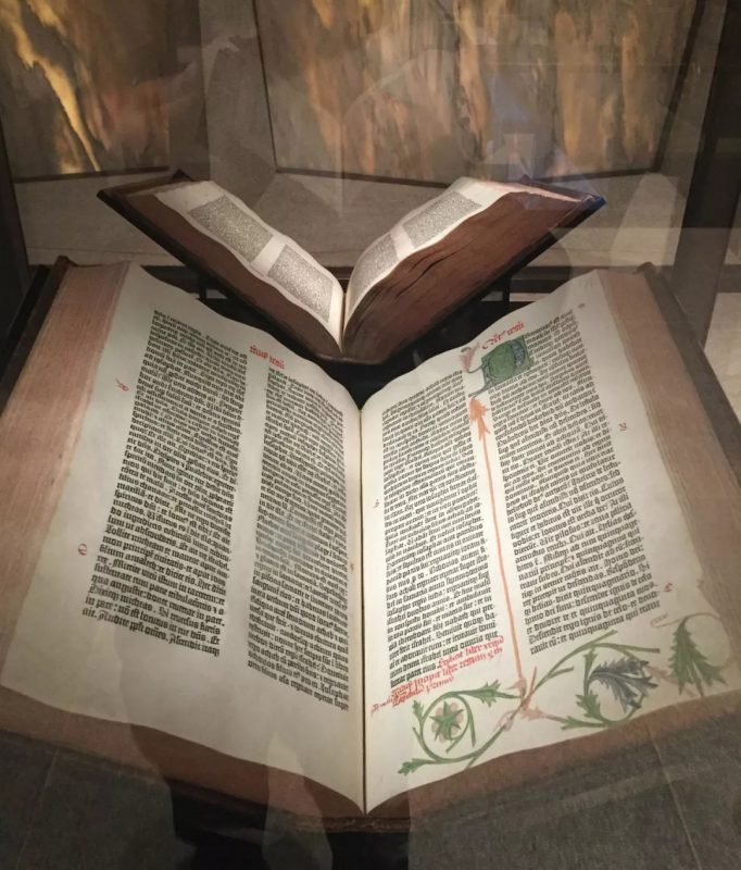 我们随后来到耶鲁的贝尼克珍本与手稿图书馆。这座1963年竣工的图书馆是世界上最大的古籍善本图书馆,里面藏有50万册珍本图书和数百万册手稿,包括一本欧洲最早的活字印刷本——古腾堡圣经。据说全世界也只有21部完整的古腾堡圣经。