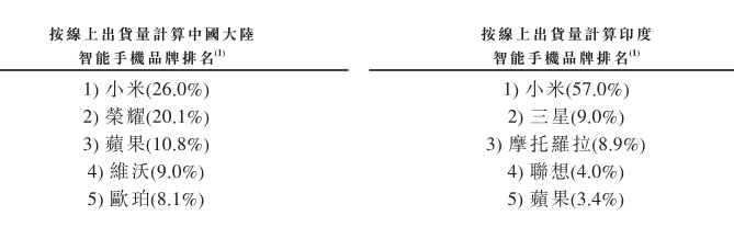 除中国大陆之外,印度是小米最大的市场,是其国际扩张的成功范例。小米于2014年进军印度市场,根据IDC统计,于三年半内成为了印度按出货量计排名第一的智能手机公司。除在线小米商城外,小米于印度的在线销售渠道亦包括Flipkart、TVS Electronics 及亚马逊等流行电子商务市场。线下渠道包括广泛的小米之家的网络及第三方运营的授权零售店。
