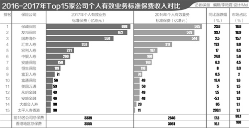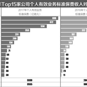 数据显示,2016年香港前三大的保险公司占据了近50%的市场份额。市场占有率排名前五位的保险公司中,有4家是外资(保诚、友邦、汇丰、宏利),仅一家为中资背景,即国寿海外。