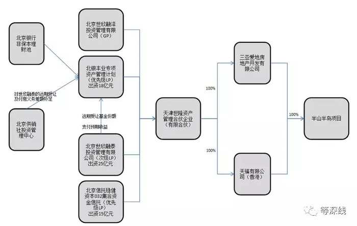 世隆基金拟募集的资金总额高达60亿元人民币。也正是这样一只基金,将华融与中弘系联系在了一起。世隆基金募集资金的指向,则是用于收购三亚爱地房地产开发有限公司(以下简称“三亚爱地”)100%股权和天福有限公司(香港)(以下简称“天福香港”)100%股权。三亚爱地和天福香港则实际控制着海南知名房地产项目——半山半岛。