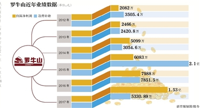 从业绩数据上看,罗牛山的净利近年保持增长,但扣非净利润自2012年至2017年累计数额约为-2.4亿元。这期间罗牛山共收到政府补助4.31亿元。