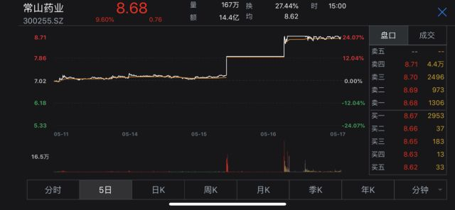 前两天公司刚刚因为公告里的一句“中国ED(阳痿)患者人数约1.4亿人”引爆市场眼球,导致股价连续涨停。紧接着,常山药业就在5月17日公告称,四名股东减持1008万股,共套现8764万元。