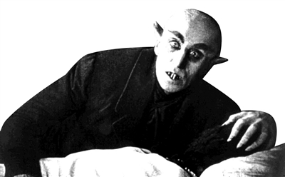 电影《诺斯费拉图》改编自《德拉库拉伯爵》,1922年于德国上映,是第一部吸血鬼题材的恐怖片。此时的吸血鬼形象充满人类对恐怖的幻象,面目可憎。