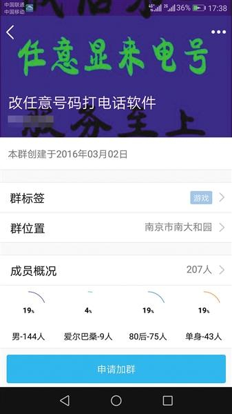通过QQ群搜索发现,售卖改号软件的并非李众泉一个。其中创建于2014年,群号为22272364的QQ群,共有227人,其主营业务也是“手机修改任意号码打电话”。这款软件售价更高,购买需要300元。记者发现,在QQ群搜索框输入“电话 改”“修改 号码”等关键词,均能找到不同的QQ群。