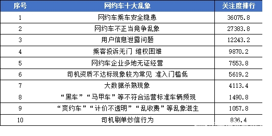 网约车关注度排行