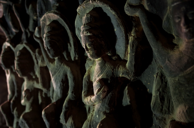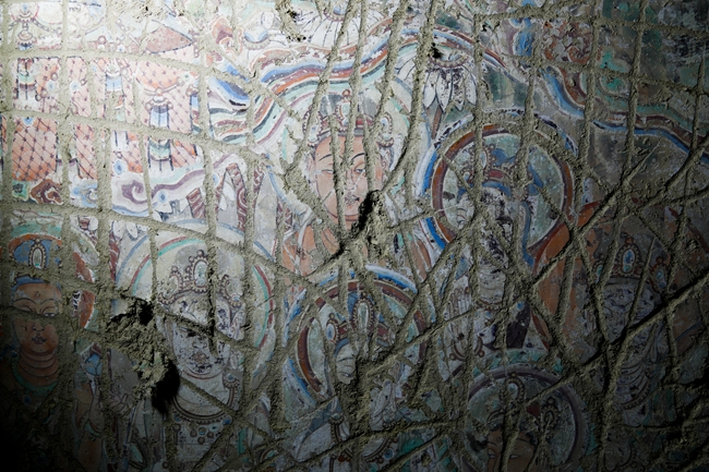 烟熏也是起甲的原因之一,因为烟里的焦油成分会与颜料产生反应。在过去的两千年里,每逢庙会,就会有信徒在石窟里住几天,生火做饭烟熏火燎,墙角和屋顶的壁画受到极大的伤害。“严重的地方什么都看不清楚。但是我们现在对于烟熏病害还不允许大面积修复。”刘涛说,目前还没有找到更合适的修复材料和方法。