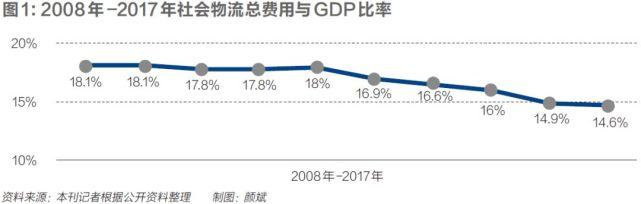 2017年,中国社会物流总费用12.1万亿元,占GDP比重为14.6%。发达国家一般为6%-7%。