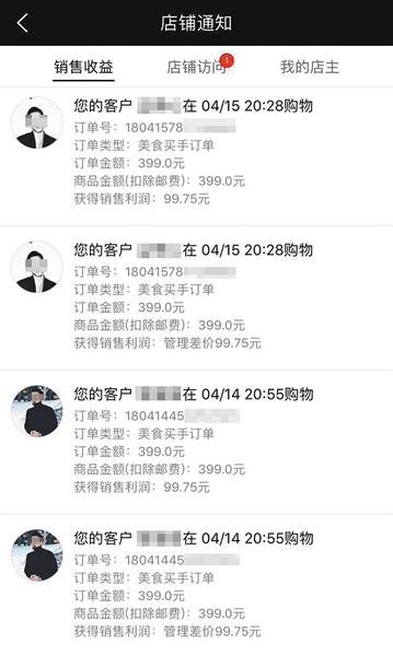 一名环球捕手店主从下级会员消费中获得的收益。