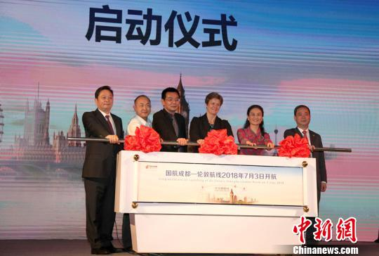 中新网成都6月6日电 (王鹏)记者6日从中国国际航空股份有限公司(以下简称“国航”)举办的新闻发布会获悉,国航计划于2018年7月3日开通成都至伦敦直飞航线。届时,旅客可以乘坐国航航班,从“天府之国”直达泰晤士河畔。
