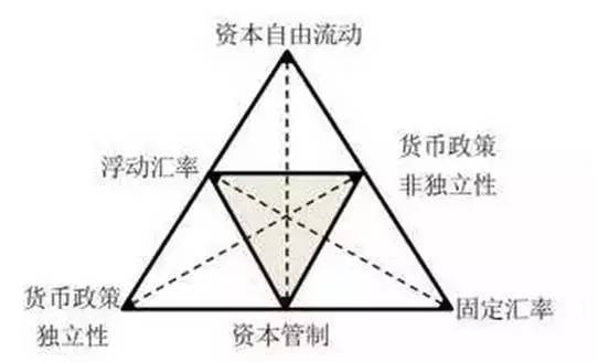 国际经济学中有一个著名的“三元悖论”或称“不可能性三角”,说的是一个开放经济体不可能同时实现货币政策独立、汇率稳定和资本自由流动这三个目标。一国在现实经济中最多只能同时实现三个目标当中的两个:如果希望本国的货币政策自主,同时保持汇率稳定,那么它就必须进行资本跨境流动管制;如果希望货币政策自主,同时资本自由流动,那么就必须放弃汇率稳定的目标;同样,如果希望汇率稳定同时资本自由进出,则货币政策自主就难于实现。上面所说的货币政策独立、汇率稳定和资本自由流动三个目标,当然都是市场经济体系所追求的良好状态。“三元悖论”告诉我们,这种良好的状态不可能实现,让人多少有点失望。