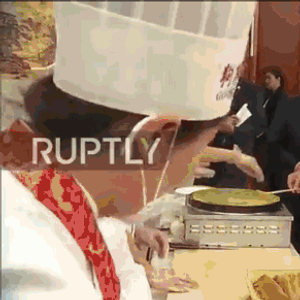 给两位领导人品尝的煎饼馃子是怎么做的,也成为不少网友关注的焦点。记者了解到,当时制作的煎饼馃子里添加了黑芝麻,放了葱花还有香菜。因为知道普京爱吃辣,给普京的煎饼馃子里还特别放了辣椒油。