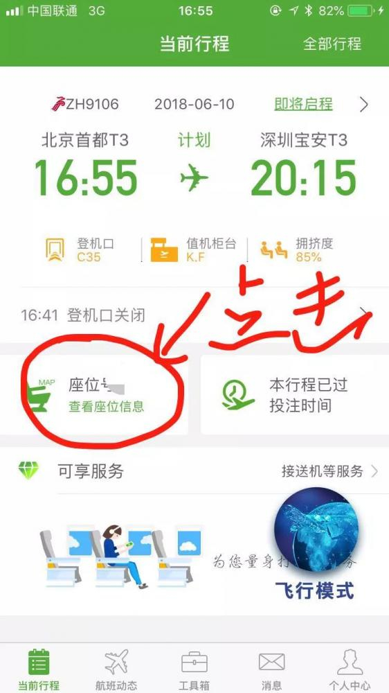今天,我发现从自己的座位号点击进去,可以看到飞机的座位图,哪个座位有人,哪个座位没人,一目了然,还挺有意思。