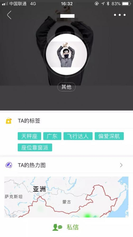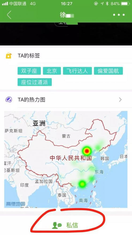 更有意思的是,点击座位,会出现那名乘客的个人主页,点击进去看看?