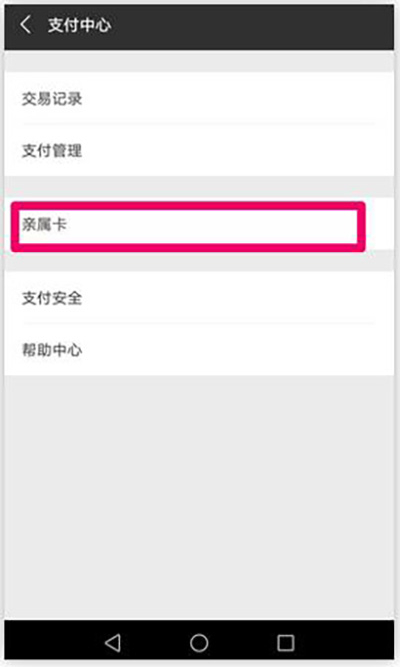 在微信中依次进入“我”-“钱包”-“支付中心”就可以看到“亲属卡”。