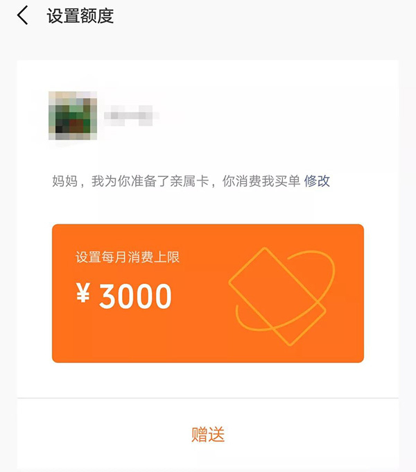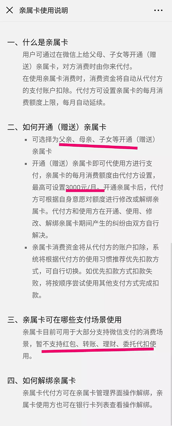 微信最新“亲属卡”功能:对方消费你买单,每月三千元上限