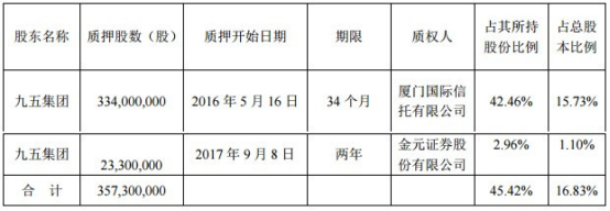 6月7日,金洲慈航发布股票停牌公告称,因近日金洲慈航股价下跌,其控股股东的股票质押情况触及平仓线。截至目前,金洲慈航控股股东深圳前海九五企业集团有限公司持有公司股份7.86亿股,占公司总股本的37.04%。已累计质押股份7.69亿股,占公司总股本的36.21%,占控股股东所持股份比例为97.76%。截至2018年6月5日,金洲慈航股票收盘价格为6.12元/股。控股股东已触及平仓线的股份总数为3.57亿股,占公司总股本的16.83%,占其所持股份比例为45.42%