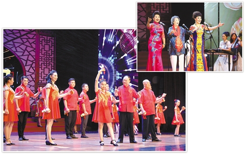 右图 93岁高龄的国家级非遗代表性传承人王毓宝(左二)携弟子演唱天津时调。