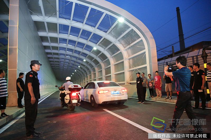 6月15日20时,手帕口立交道口通车,在交警引导下,第一辆车顺利通行。