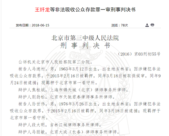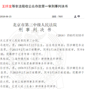 新浪财经讯 近日,中国裁判文书网发布了王纤龙等非法吸收公众存款罪一审刑事判决书,上述四人以中投汇富、中诚联合名义,投资项目可高额返利以并保本为名向公众吸收资金,造成投资人损失共计10亿余元。