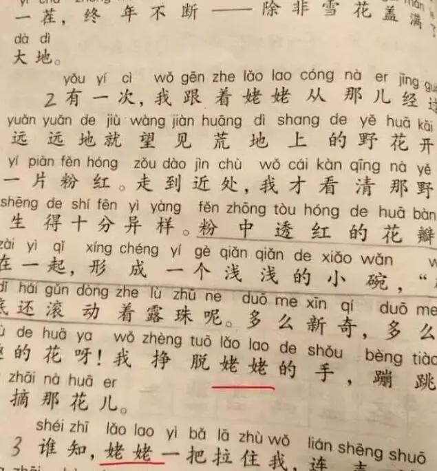 有媒体报道称,上海小学二年级的语文课文第24课《打碗碗花》 (李天芳著散文),原文中的“外婆”全部被改成了“姥姥”。