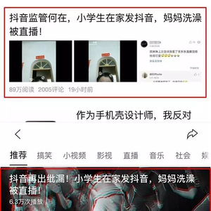 小学生在家发抖音妈妈洗澡被直播 监管何在?