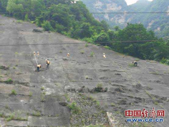 “蜘蛛侠”们正在进行山体隐患排查。经济日报-中国经济网记者佟明彪/摄