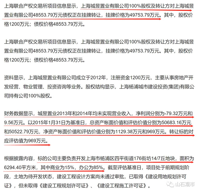 到这里,我们基本看到了一个事实,那就是杨浦城投10年末拍得176地块之后,非常巧妙的将它放在了在建工程项目并每年增值,4年之后,在一个绝妙的时点,15年股票牛市的终点,这一轮房价牛市的起点,将这块没有动迁也没有开发的毛地以股权转让的方式,卖了一个香港地产企业。