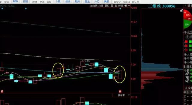 2、三维丝,双响炮形态,第13天周期涨停。