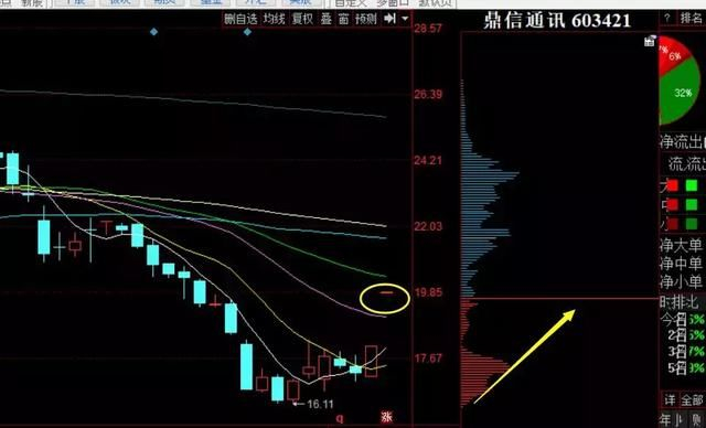 2、鼎信通讯,低位一线天形态,上方套牢筹码还是比较多的。