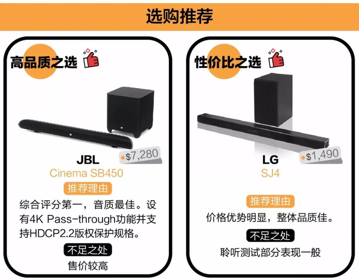 综合评价:主推LG SJ4和JBL Cinema SB450