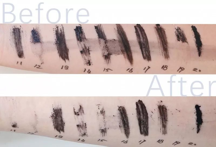卸妆水测试中,部分睫毛膏是可以很轻易得被普通的卸妆水擦除的,而另一部分无法被化妆水所溶解,或者需要反复擦拭的,我建议大家,一定要用眼唇卸湿敷!千万不要擦!这都是小编血和泪的教训,小编在测试初期因为贪图方便,用卸妆水擦拭卸除,搞得试到第7支的时候眼睛撕裂般疼痛。眼皮很脆弱,请大家关爱它。