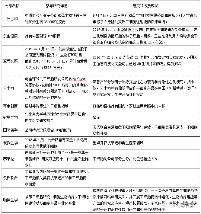 上市公司布局干细胞治疗