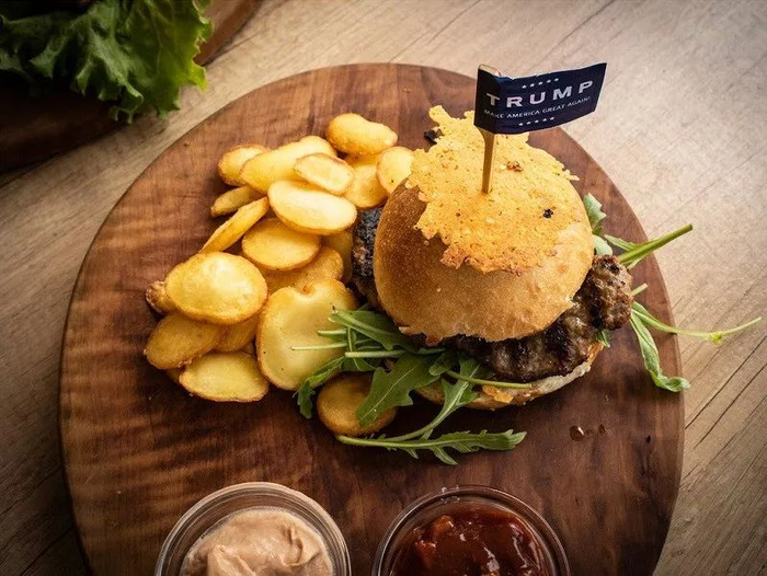 在一个名叫Rondo的餐厅,用餐者可以品尝一款“总统汉堡”,面包上放着一块煎炸的奶酪,看起来很像唐纳德·特朗普的头发。