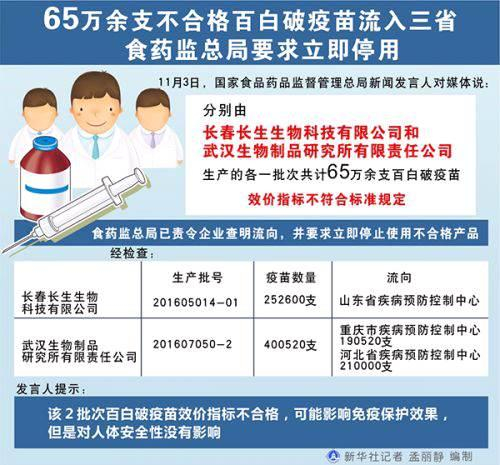 武汉生物不合格百白破疫苗数超长春长生 高达40万支