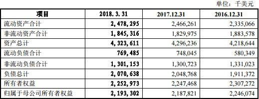 SQM 2016年至2018年1-3月负债总计分别为19.11亿美元、20.49亿美元、20.71亿美元。其中,流动负债分别为5.80亿美元、7.48亿美元、7.70亿美元;非流动负债分别为13.31亿美元、13.01亿美元、13.07亿美元。