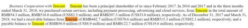 虽然在接受《财经》杂志采访时,黄峥曾否认过“腾讯系”的说法,但拼多多招股书显示了对腾讯平台的巨大依赖。