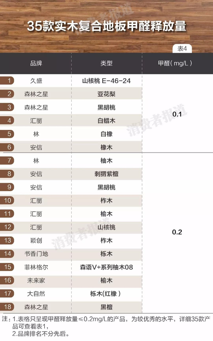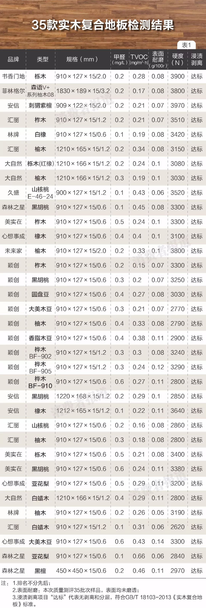 2017年底,上海市质量技术监督局对市面上销售的35款实木复合地板进行了抽样检测。