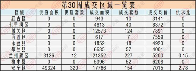 第30周兰州楼市新房成交698套 兰州新区一周售出227套