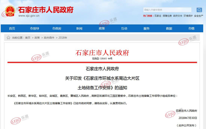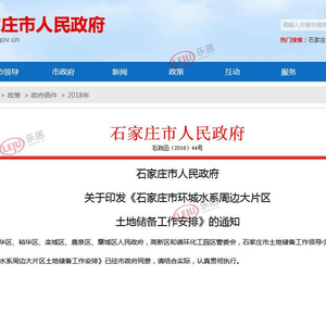 8月2日,新浪乐居于石家庄市人民政府网站获悉,《石家庄市环城水系周边大片区土地储备工作安排》(以下简称《安排》)发布。根据《安排》,将对环城水系周边范围土地进行初步调查,同时延伸至滹沱河生态修复工程藁城段,鹿泉龙泉湖湿地,南二环西延等重大基础设施周边,统一纳入大片区土地储备范围。
