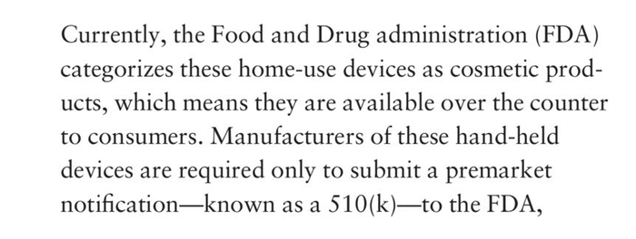 简单的说,这些家用仪器在投放市场之前,生产商都需要提交一个售前通知给 FDA,里面需要给出多人实验、还需要随访治疗结束后一年后的数据。