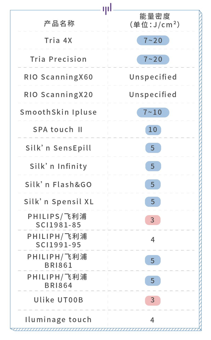 根据多个论文的实验研究结果,能量密度低于 5 J/cm² 的,效果相对较弱——可以再淘汰掉一批市面上常见的品牌和产品。
