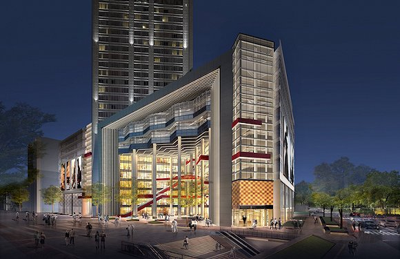 他们想要从先入为主的视觉上就有很大的改变。世茂商业请来了当年主笔改造上海K11的设计师Kokai Studios进行此次改造。从世茂广场提供的效果图来看,全新设计的门头、打破封闭的玻璃幕墙、红色扶梯与平台的确带来了视觉冲击的效果。