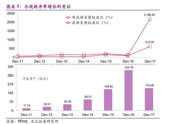 光大证券表示,乐视网的资产规模扩张速度惊人。乐视网2011年的资产规模仅有17.74亿元,到2016年末迅速扩大至322.34亿元,复合增长率高达160.61%。短短的几年,发展成为我国大型的影视剧互联网发行门户及中国领先的3G手机电视门户。但是在快速扩张之后,2017年乐视网出现资金链断裂的风波,资产大幅减值、净利润巨亏116亿元,成为2017年净利润亏损最多的发行人。