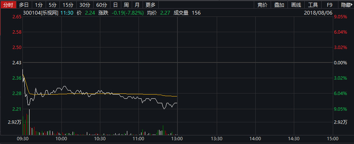 乐视网今日股价一度跌超9%