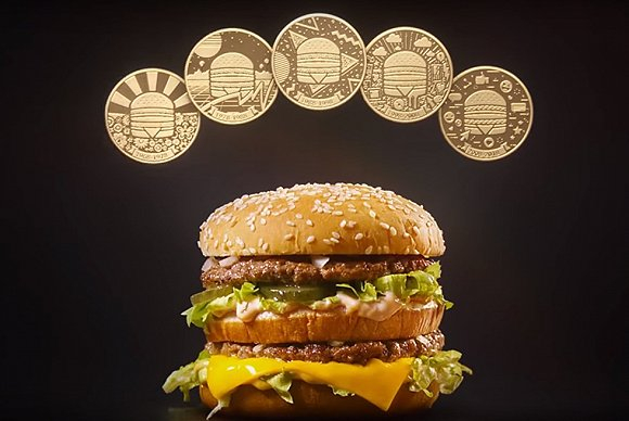 为了庆祝巨无霸50周年,麦当劳推出了一套五款巨无霸收藏币MacCoin。这是全球第一套以食物为信用支撑的收藏币——顾客凭MacCoin可以在全球超过50个国家和地区的麦当劳餐厅免费兑换巨无霸一个。而在2018年8月6日周一,中国内地超过2500家指定麦当劳餐厅将免费送出超过100万枚MacCoin,只要来到麦当劳门店为巨无霸唱一首生日快乐歌。